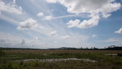 Formed of a deep body of peat, raised bog can be several metres higher than the surrounding land and covered with a skin of typical bog vegetation. The size of the bog and frequently a fringe of secondary woodland make this extraordinary domed structure hard to appreciate. It tends to be the location at flat valley bottoms and lowland plains, bog vegetation and protected status that identify intact raised bogs.