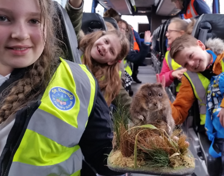 Year 4 & 5 pupils from St David’s School in Exeter off to meet some water voles. Image by: Paul Martin.