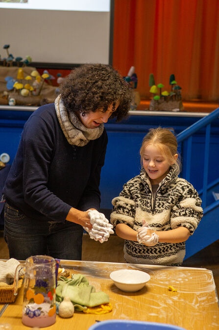 The attendees also experimented with mushroom printing, dipping field mushrooms into paint and creating colourful cards showing the gills and stalks of the fungi.