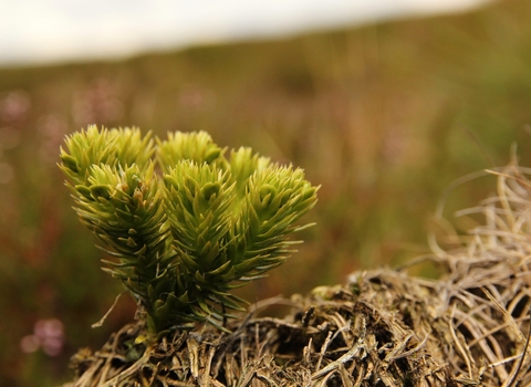 There are seven species of clubmoss in the UK, which are very difficult to tell apart. Fir clubmoss is a member of the 'fern allies' section of flora and is yellowy-green with upright stems and needle-like leaves, giving it the look of a tiny conifer.