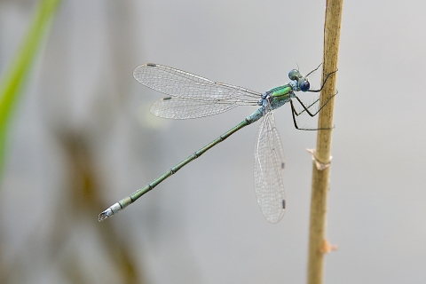 The Emerald damselfly is a medium-sized damselfly that lives among lush vegetation around the edges of ponds, lakes, ditches and canals. When perched, Emerald damselflies have a habit of holding their wings half-open, rather than closed along the length of their body like other damselflies. The last species of damselfly to emerge in the UK each year, they are on the wing from the end of June to September.